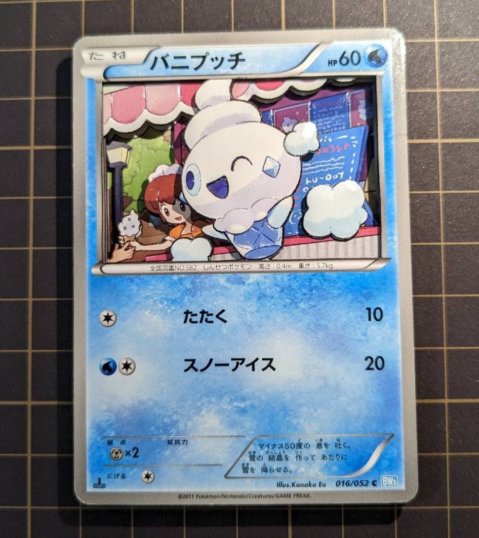 3 11 今日の立体ポケカ ポケモンカード バニプッチ 使用カードは5枚です。 イラスト可愛すぎるので大好きです🥰 #シャドーボックス 22/09/01 18:48