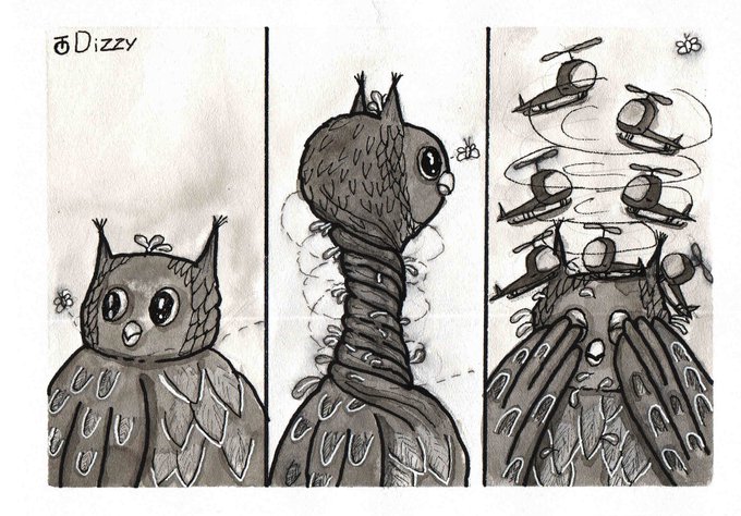 Inktober, day 19, "Dizzy" Инктобер, день 19, "Головокружение" ⠀ #inktober2020 #inktober2020official #inktoberday19 #dizzy #owl #inktober2020dizzy #ink #art #artist #draw #drawing #liner #инктобер2020 #инктобер #инктобердень19 #головокружение #художник #рисунок #тушь #линер