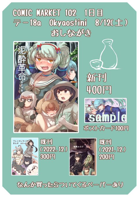 あなたのサークル「Okyaostini」は、コミックマーケット101で「金曜日東地区 "ラ " 32b」に配置されました!コミケWebカタログにてサークル情報ページ公開中です! webcatalog.circle.ms/Circle/1681344… #C101WebCatalog 漫画作ってます。ピンチですががんばります!