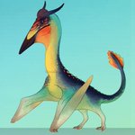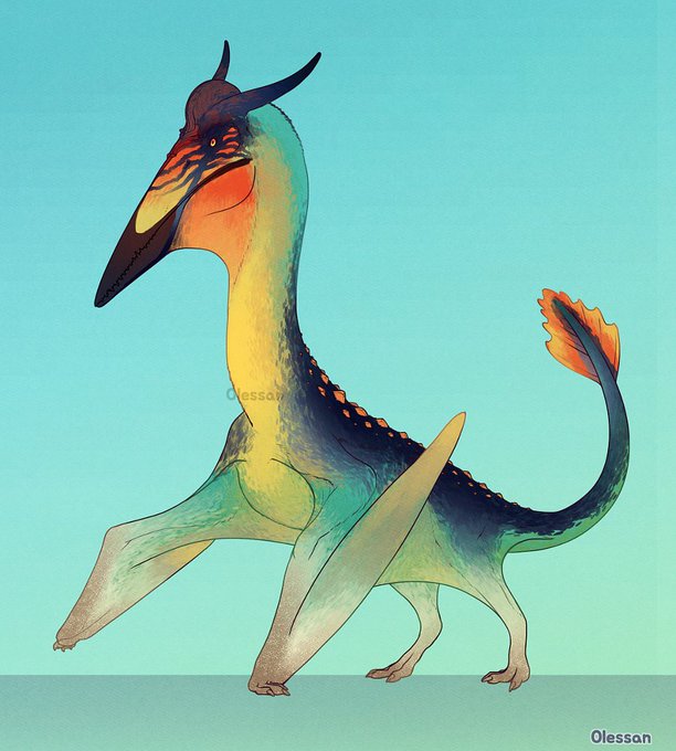 #Smaugust2020 #3 (still 3 behind!), Wyvern. The golden-throated wyvern is a derived azhdarchid pterosaur found throughout Oceania. How it survived several extinction events is unknown, but it's a fictional dragon so that doesn't matter much. It is critically endangered. #Smaugust