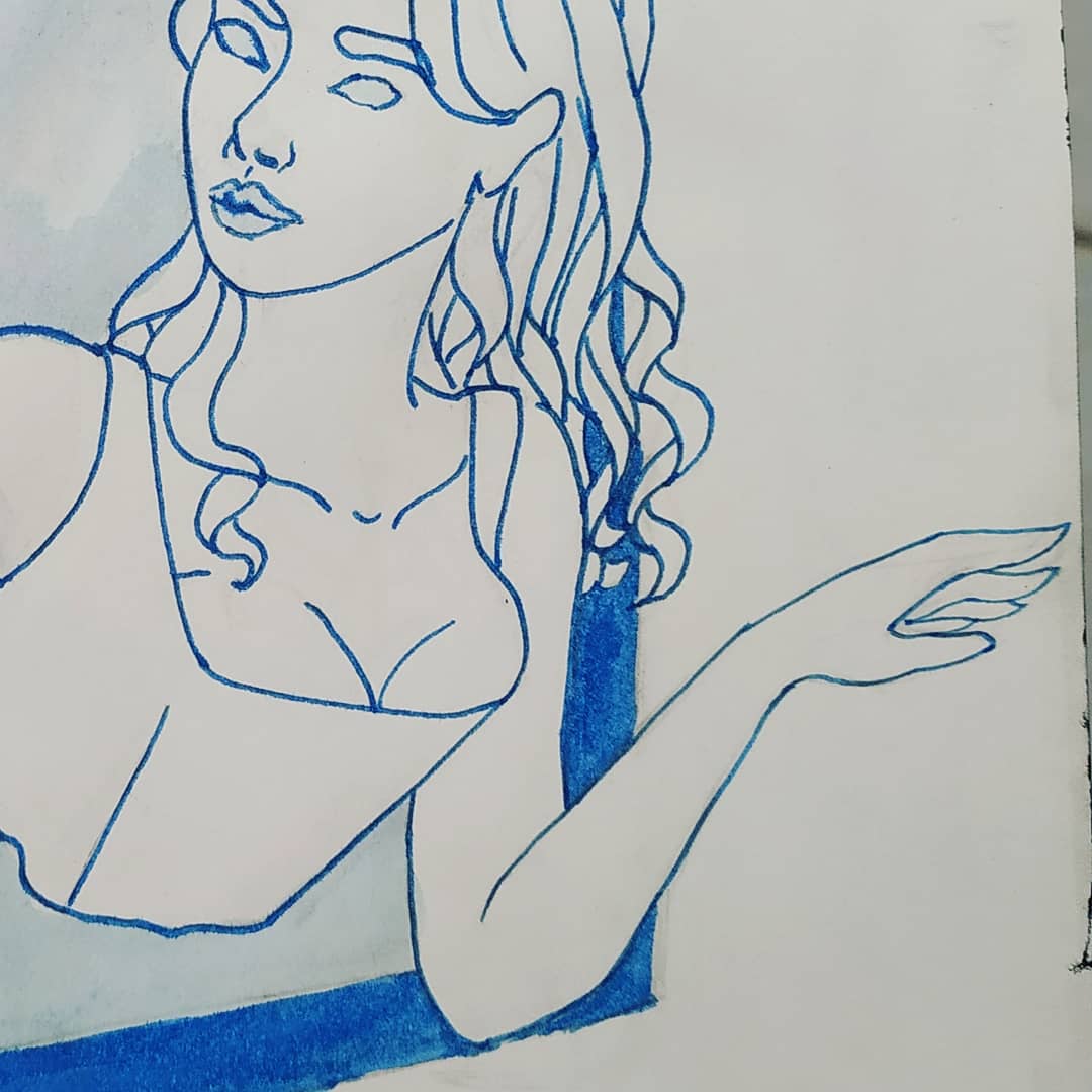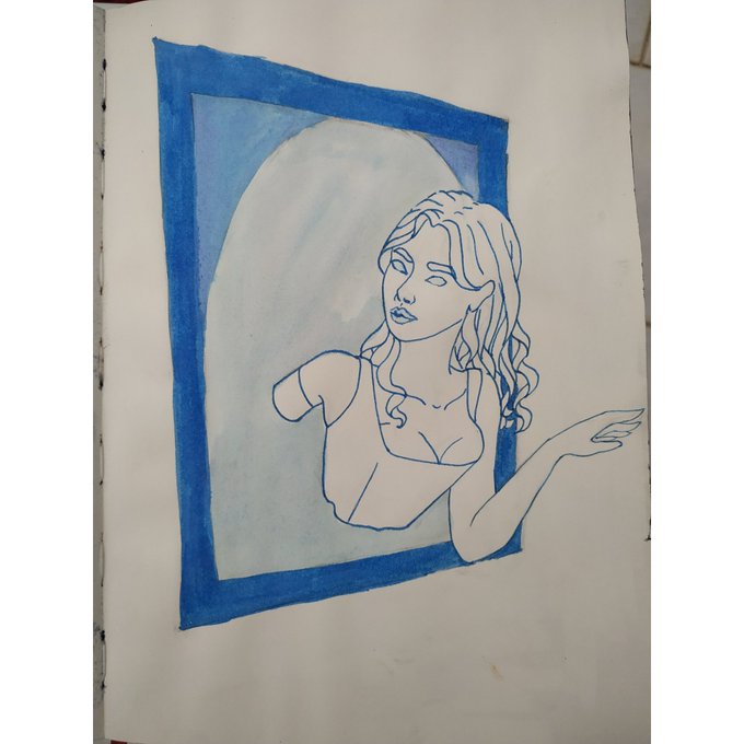 Heymarytober Day 10 "Ghost" She was trapped in the mirror by an evil witch until some adventurers freed her by accident. She was astonished by how much the world had changed. #haymarytober2020 #inktober #ink #blueink #illustration #ghost #mirror #sketch #smallartaccount