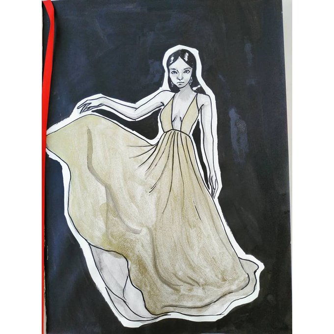Inktober Day 7 "Fancy" This was probably the hardest prompt to decide what to draw for. It ends up in my book nothing talks fancy as a golden gown! #drawing #gold #golddress #golden #goldink #blackink #ink #inktober #inktober2020 #art #illustration #smallartaccount