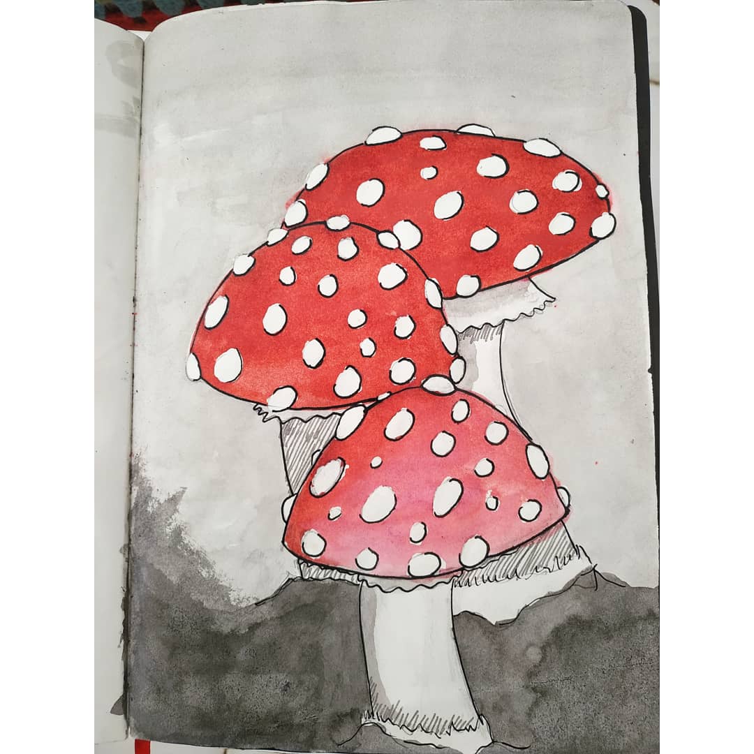 Inktober Day 8 "Mushroom" Today I took a prompt from a different list @heymaryjean list! I have been wanting to draw mushrooms for some time especially with ink! #myart #inktober2020 #inktober #heymarytober2020 #mushroom #mushroomdrawing #ink #redink
