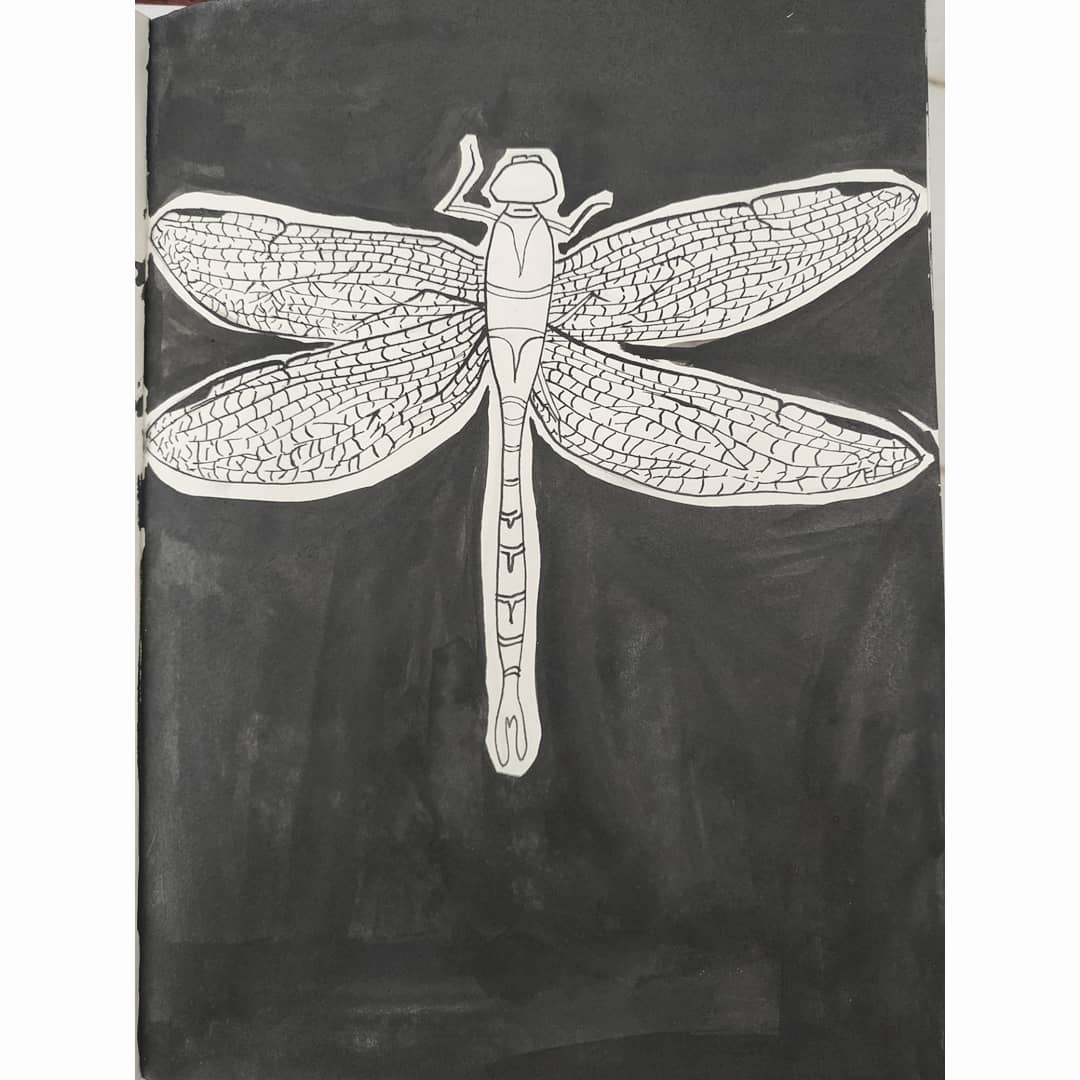 Inktober Day 12 " Insects" I have always loved drawing insects but I have to say the wings on this dragonfly were quite challenging! #inktober #inktober2020 #ink #blackink #blackandwhite #dragonfly #inkdragonfly #insect