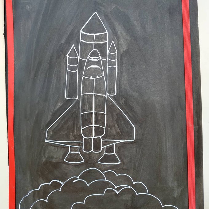 Inktober Day 16 "Rocket" Tried a fully black page for today and some white ink pen! I am really loved the effect!!! #myart #traditionalart #stylized #drawing #lineart #art #illustration #inktober #inktober2020 #rocket #ink #blackink #whiteink