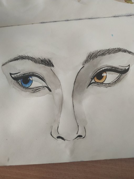 Heymarytober Day 19 "eyes" Do you know the condition called heterochromia? It is a condition in which a person is born with two differently colored eyes. #traditionalart #drawing #lineart #color #art #illustration #heymarytober2020 #inktober2020 #eyes #eyesdrawing #heterochromia