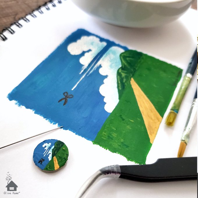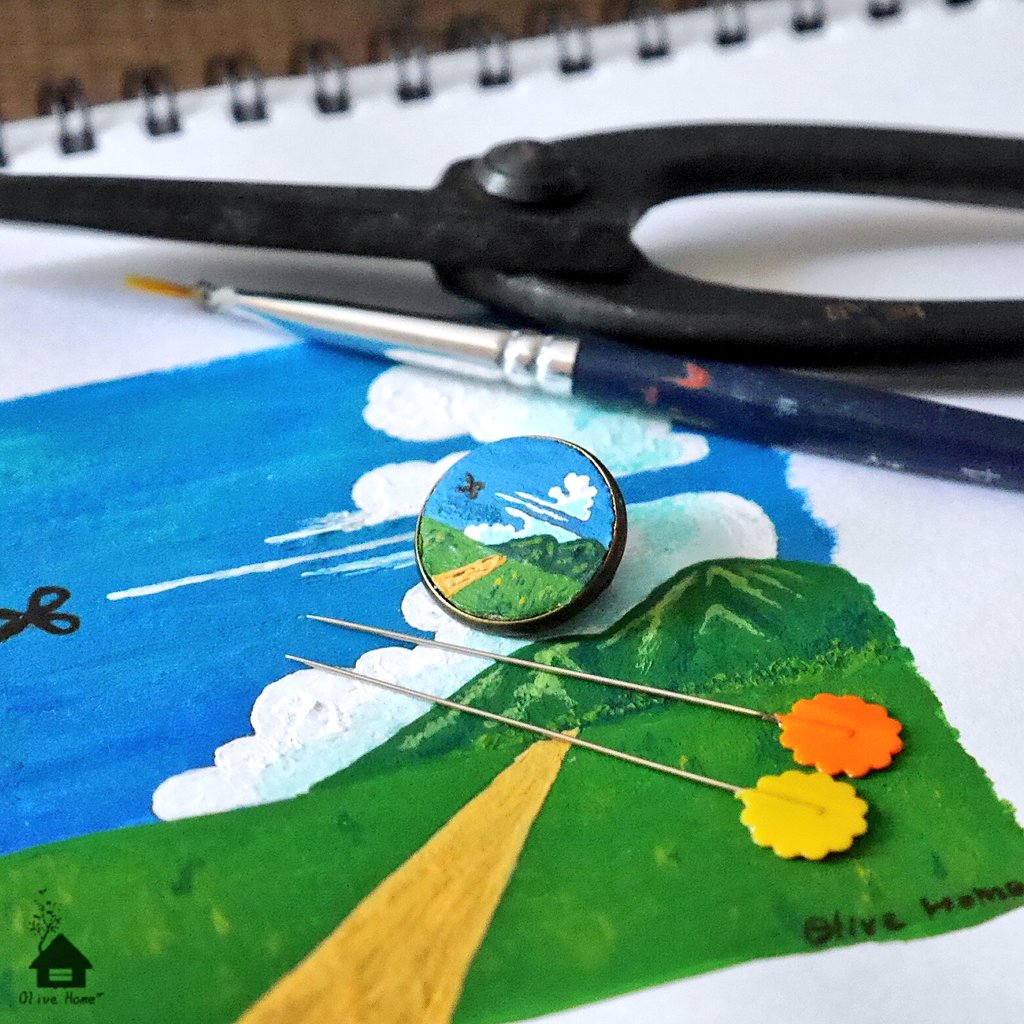 「思い出」も「記憶」も、 大人になると、いつの間にか「知識」に変わる。 そのな切ない美しさを、忘れないよう握りしめられる大きさで。 【夏を切りとる絵画のブローチ】 minne.com/items/32904532 #ハンドメイド好きさんと繋がりたい #絵画 #イラスト #山の日 #minneで販売中