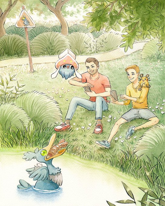 The air smells of adventure and fun! These drawings were done for a father and his kids. #pokemon #illustration #watercolor #art