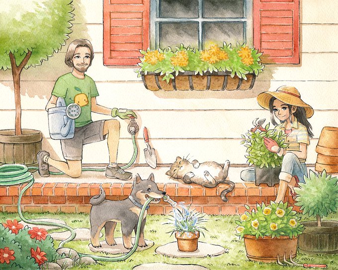 A perfect day for tending to the garden! A commission done with watercolor/ink on cold press watercolor paper. #art #illustration #commission
