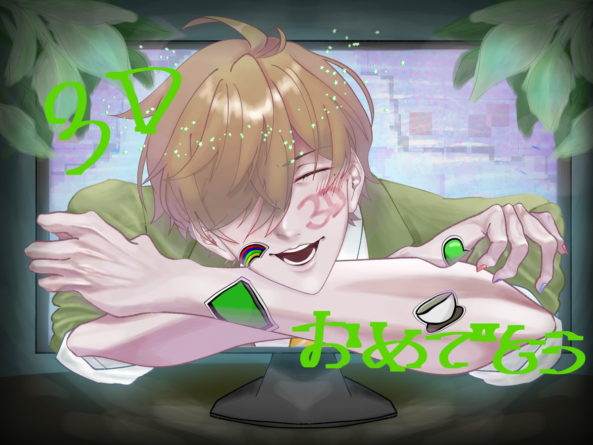 5 16 #まめねことレオス 3Dおめでとう絵描いてなかったので…(遅)おめでとう!!!!🎉 加工ゴリゴリすぎて原型が無い(誤魔化し) ツリー下に無加工置いておきます🤔 22/07/29 09:07