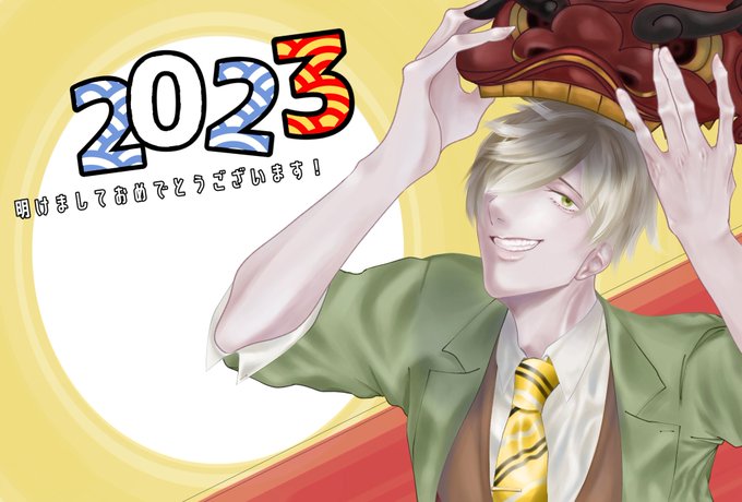 2 4 #絵バンス 大遅刻!!!!年賀状用に描いたはずのあけおめ絵です🎍 バラのブローチは家出しました 23/01/05 20:01