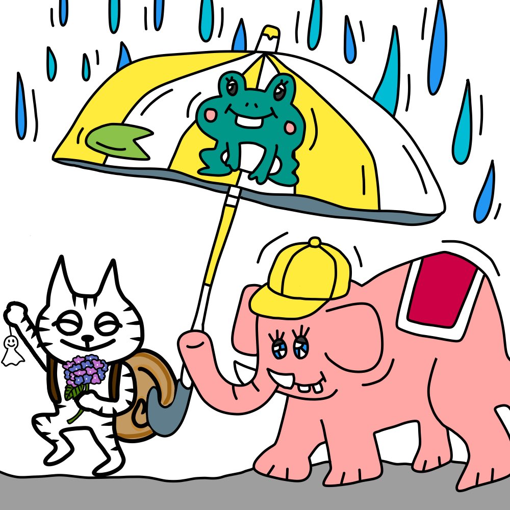 梅雨入りしてきましたね🐸☔ฅ•ω•ฅ🐌 今日も浅田尻さんとのコラボです😋 いつもありがとうございます🙏🏻✨ #落書き #デザイン #アート #イラスト #絵描きさんと繋がりたい #art #design #drawing #みんなで楽しむTwitter展覧会 #ゆるいイラスト #猫のイラスト #猫好きな人と繋がりたい #浅田尻