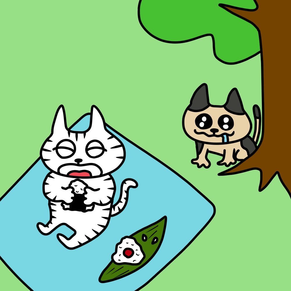 今日はけけちゃんのお友達の登場ですねฅ•ω•ฅ🍙 #落書き #デザイン #アート #イラスト #絵描きさんと繋がりたい #art #design #drawing #illustration #painting #みんなで楽しむTwitter展覧会 #ゆるいイラスト #猫のイラスト #猫好きさんと繫がりたい #おにぎり