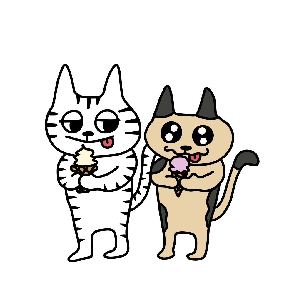 今日はこの前のお友達とアイスクリームを食べているようですฅ•ω•ฅ🍦 #落書き #デザイン #アート #イラスト #絵描きさんと繋がりたい #art #design #drawing #illustration #painting #みんなで楽しむTwitter展覧会 #ゆるいイラスト #猫のイラスト #猫好きさんと繋がりたい #お友達シリーズ