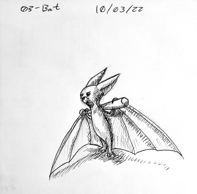 Posting a bit late but technically I did finish #inktober22 day 3 before midnight lol but for this days #inktober we have a bat with a bat \o/
