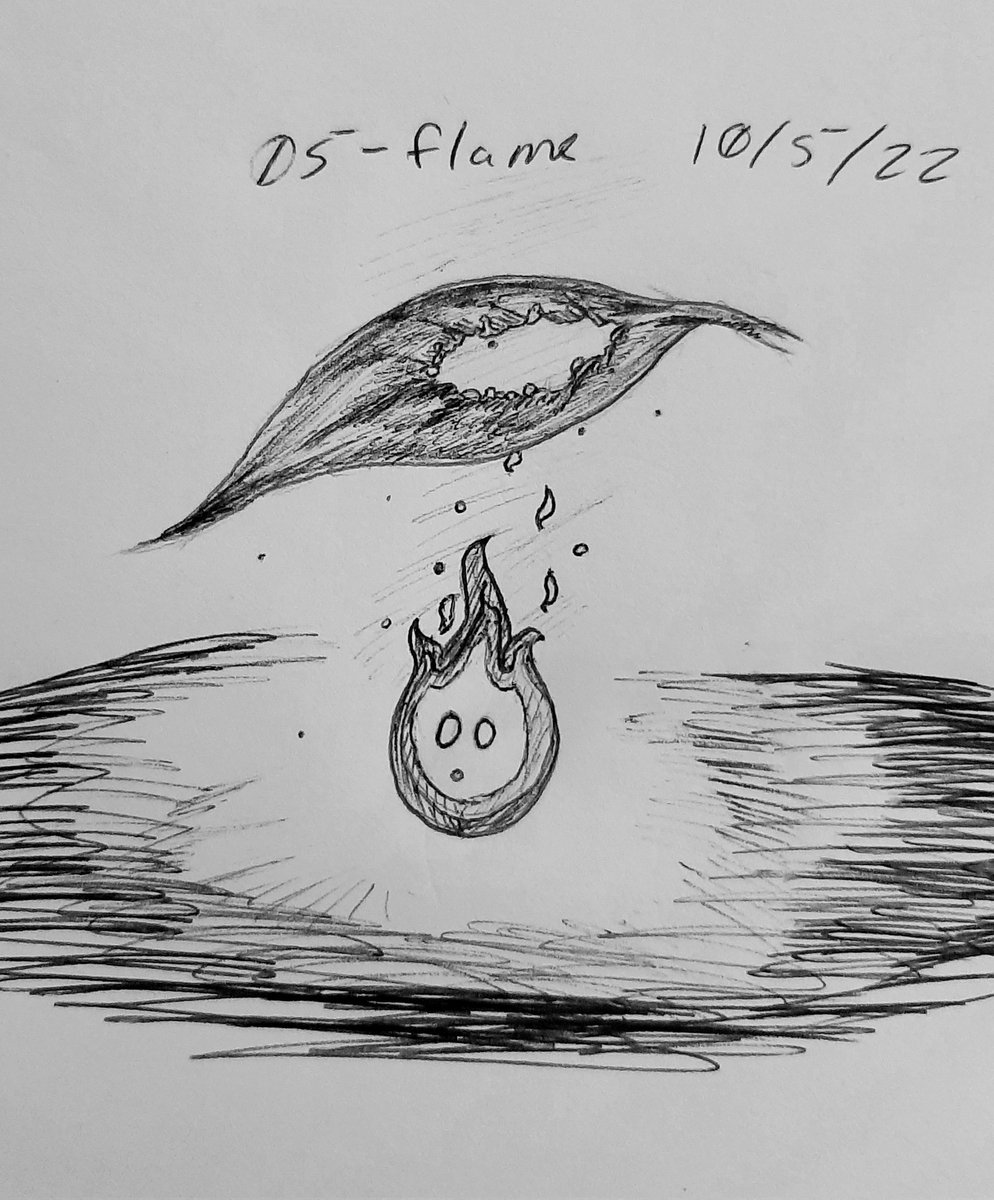 Well I was a bit late for #inktober22 day 5, but better late than never the 5ths prompt was flame. So we have a little wispy flame who may have forgoten that he is fire and burned a hole in his leafy covering lol #inktober