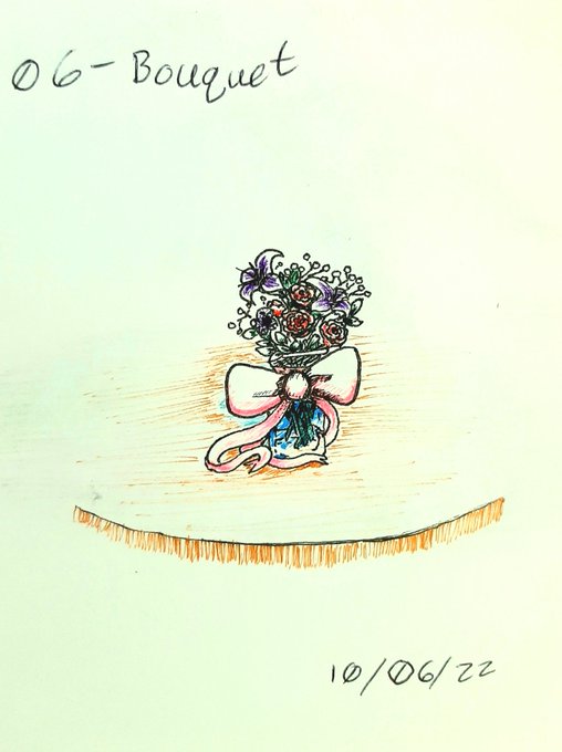 #inktober22, day 6, we have a bouquet. Ok that is weirdly spelt word lol, but we have a small bouquet of flowers in a vase, and I have found my colored pens, and highlighters \o/ #inktober