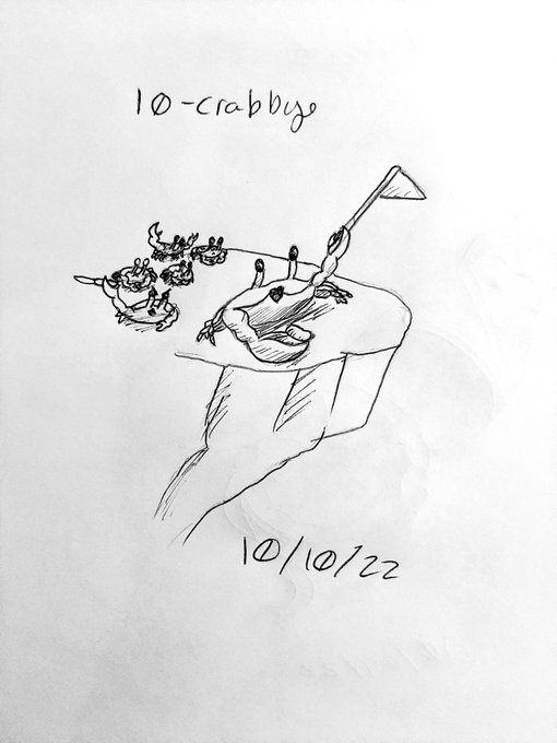 #inktober22 10-crabby Crabbbbby.... crab \o/ and crabby crab with a knife, hmmm lol anywhere we have some worried and happy crabs \o/ #inktober