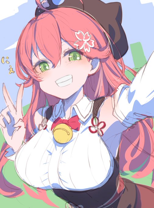 ファイト!と応援してくれてる感じの団長を描きました 団長はホロ見るようになった切っ掛け これから団長はじめホロライブのほかのみんなも描いていきたいなー #ノエラート #絵描きさんと繫がりたい