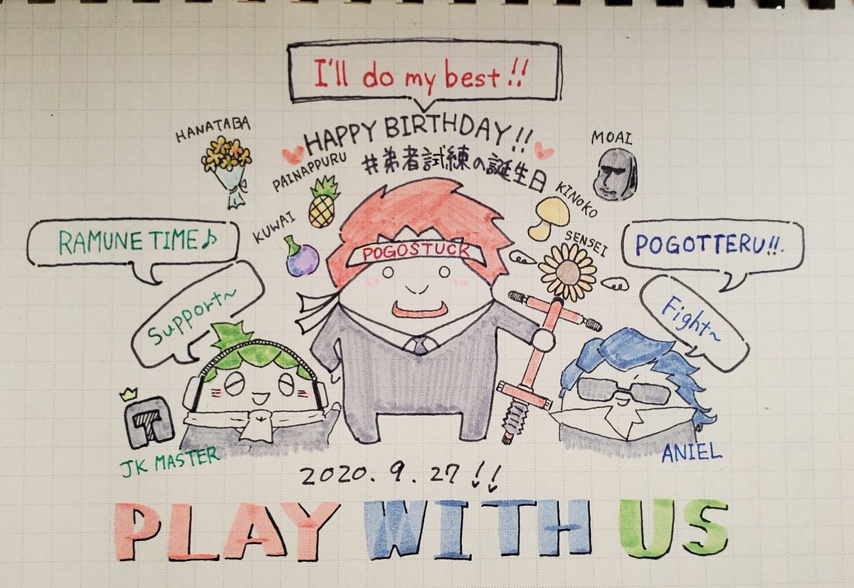 7 28 他の神絵師様のほど上手くはないけれど誕生日おめでとうございます🎉🎊🎉 (本当にアナログで申し訳ない...) #弟者試練の誕生日 #2bropics 20/09/27 01:09