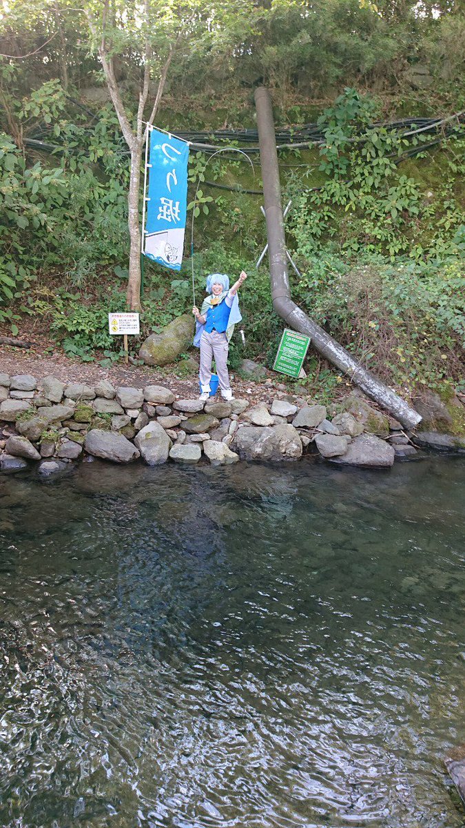 コスプレしたまま釣り堀楽しめる那須ハイランドパークは貴重だと思う。 釣れたお魚は1匹500円で全て焼き魚と交換。 ピチピチのお魚から針が取れなくても、スタッフさんに頼めば取ってくれる。 釣り堀だから、下手くそでも釣れる。 調子こいて落ちたら自己責任w #コスプレ #那須ハイランドパーク
