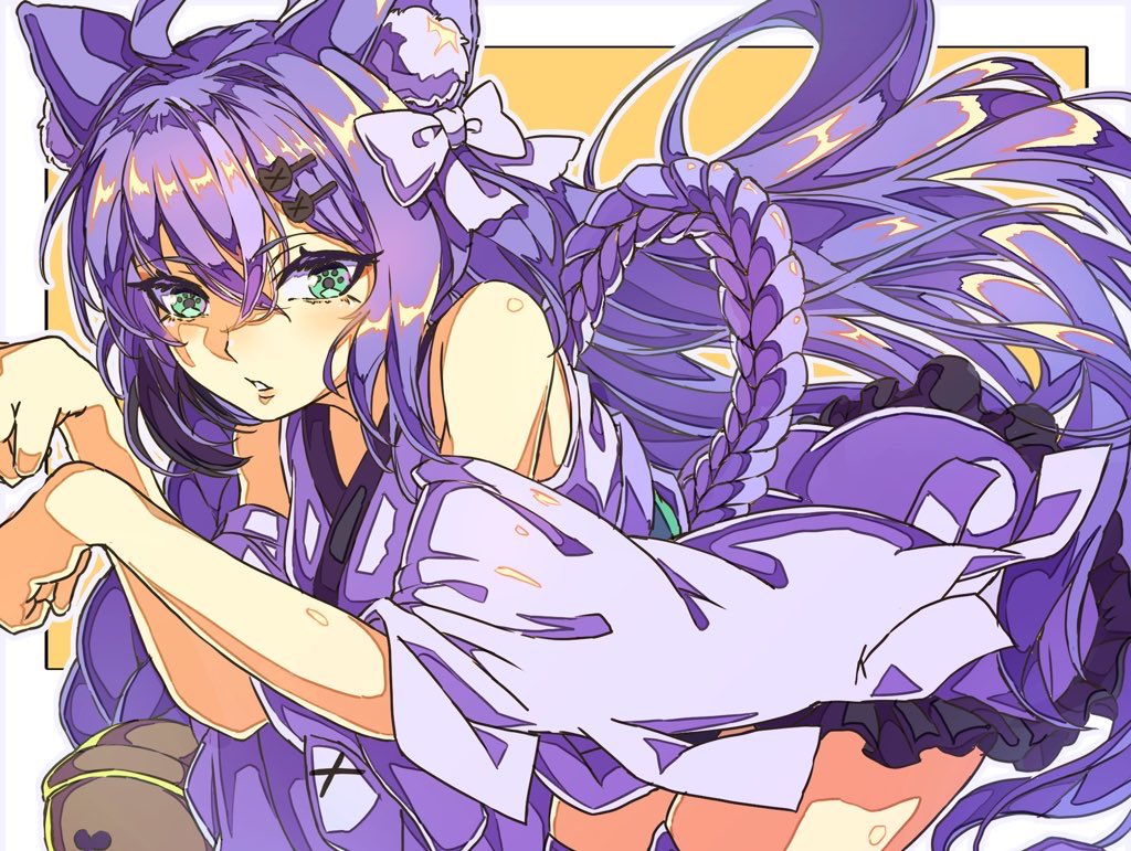 ちょ〜っと見すぎじゃないかなぁ...?? #絵かゆ #猫又おかゆ