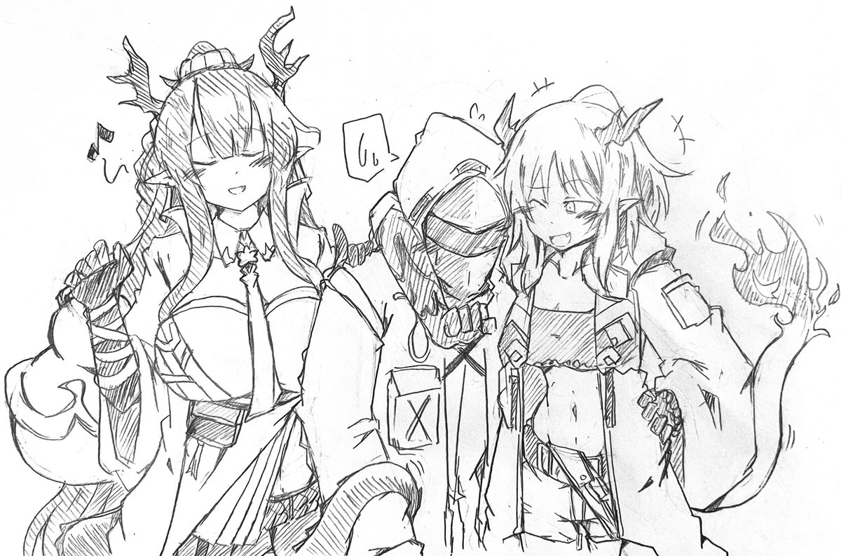 ニェン「おー元気かドクター!?なぁ、すっげーウマ辛い店の噂があったから一緒に行かねーか?あ、拒否権はねーぞ?」 リィン「貴君よ、こういうのもまた一興。共に楽しもうじゃないか。」 シー「なによ…随分楽しそうじゃない…私ならもっといいお店に連れていけるけどね…!」 #アークナイツ