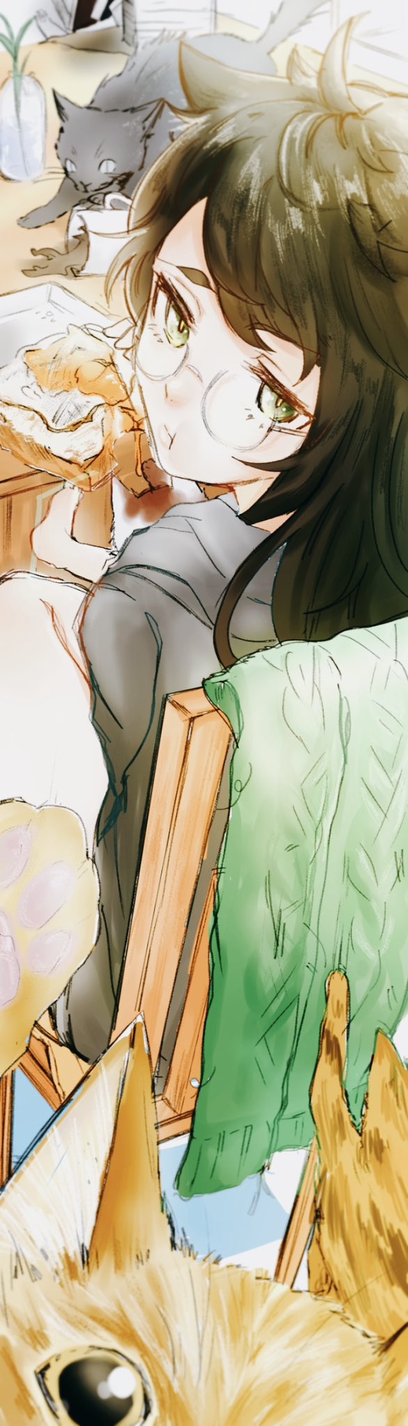 猫ちゃん #イラスト #オリジナルイラスト #イラスト好きな人と繋がりたい #猫擬人化 #イラスト練習 #アナログイラスト