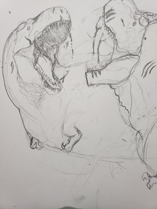 Made a sketch based on this. The thing I like the most in footage of animals fighting, particularly in reptiles and birds is those moments when they freeze mid fight and stare at each other in what to my knowledgeis a threat display. I tried to emulate that look. #paleoarttwitter.com/MagDaVeloRap…