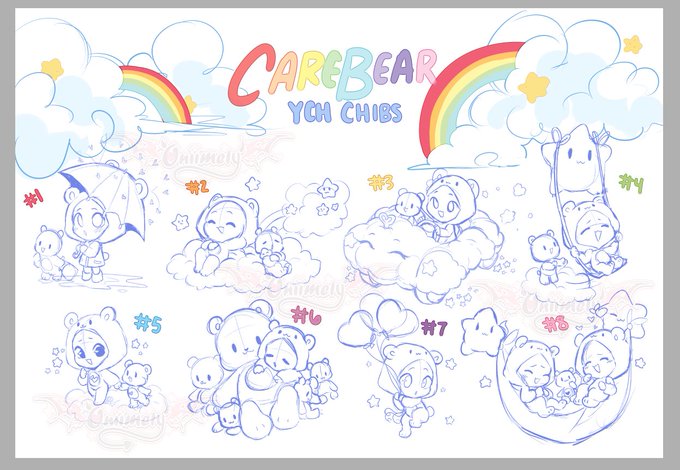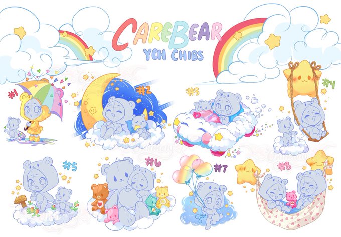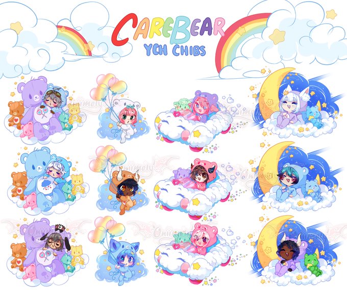 🌈CAREBEAR YCH OPEN !! 🌈 Limited slots but I plan to open more batches :D! Please make sure to read all the info and description! Everything in gray is customizable :) $50 Each $90 Couple They are available on my kofi: 🧸: ko-fi.com/oniimely/commi… Rts are appreciated! <3