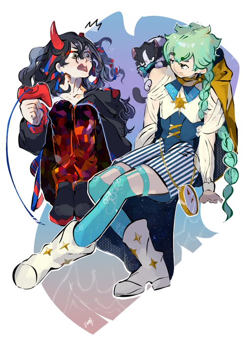 1 13 リクエストで描きました! 納品完了です。 構図が難しくて、かなり難産でしたがなんとかまとまったんじゃないでしょうか・・・☠️ Thank you for requesting! 22/02/27 21:30