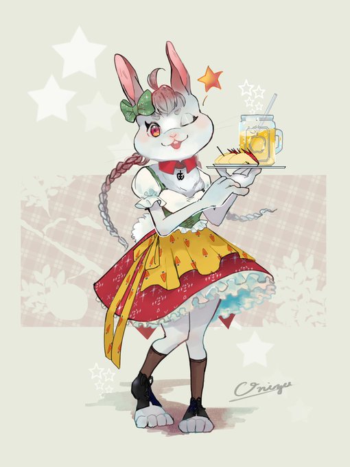 0 4 うさぎ林檎はいかが〜? 🐰🍎🍹 #獣人 #ウサギ #イラスト練習中 23/01/11 20:00