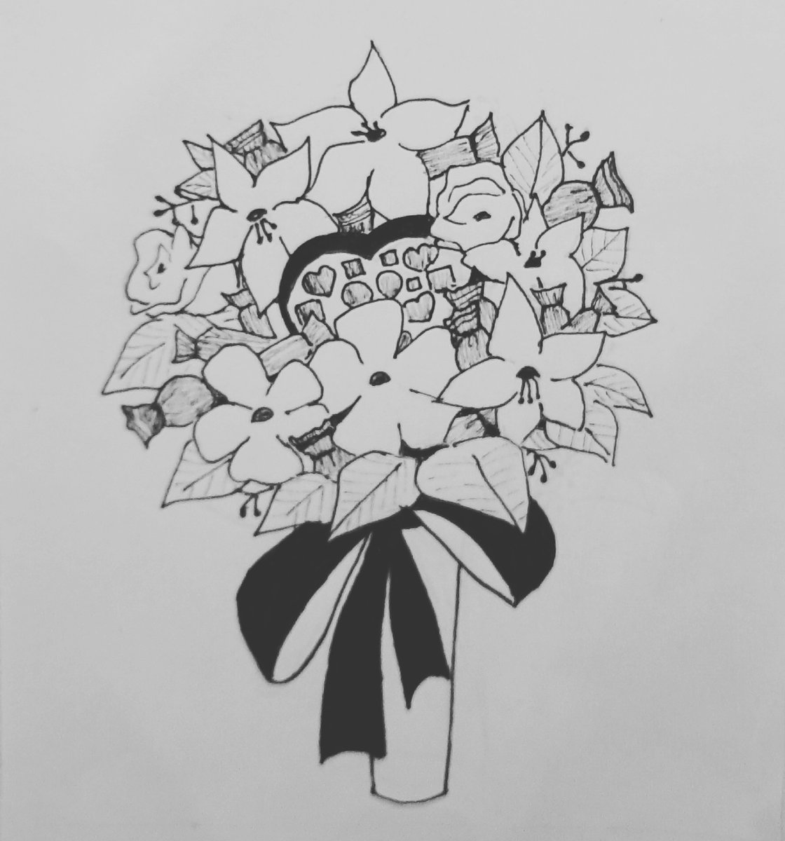 Un bouquet de fleurs c'est bien, un bouquet de fleurs, de bonbons et de chocolats c'est mieux haha #Inktober #inktober2022 #inktoberday6 #inktober2022bouquet #bouquet