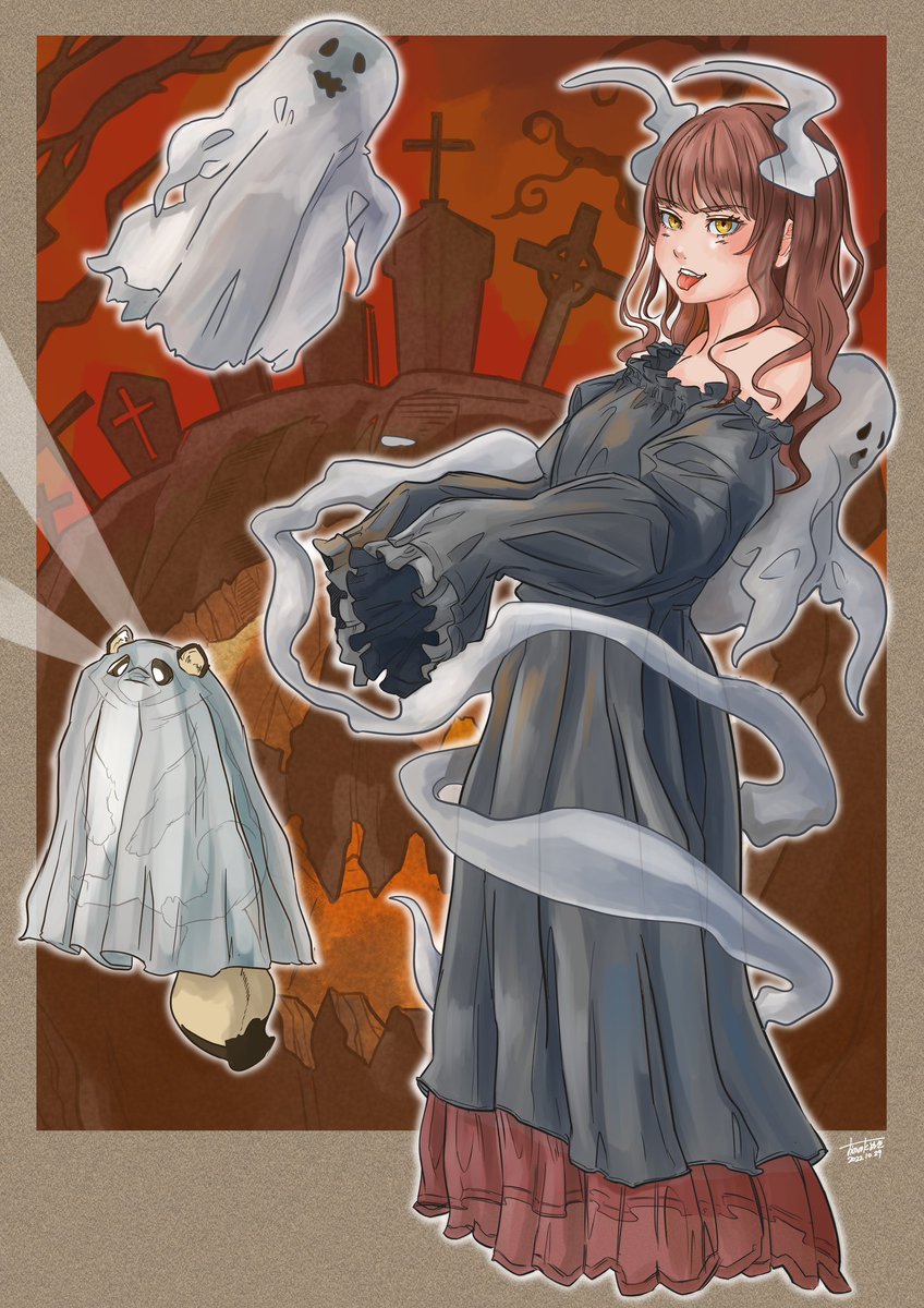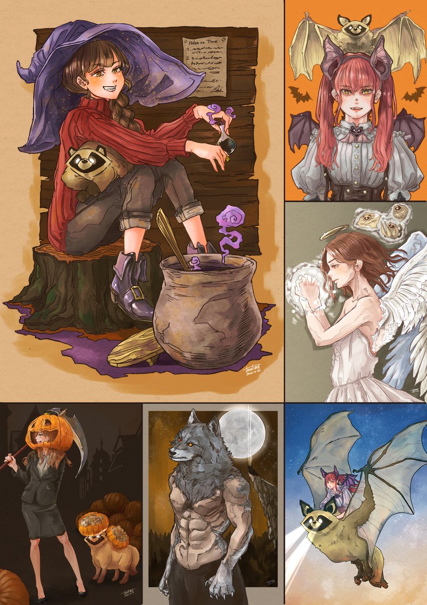 ハロウィンですね。10月も終わるのですね。今月はハロウィンぽい絵を描いた感じの月でした。天使はちょっと違うけど。 フランケンシュタインやミイラ、ゾンビなどは描けなかったので来年の自分に課す。覚えてたら描く。 #イラスト #今月描いた絵を晒そう #ハロウィンイラスト2022