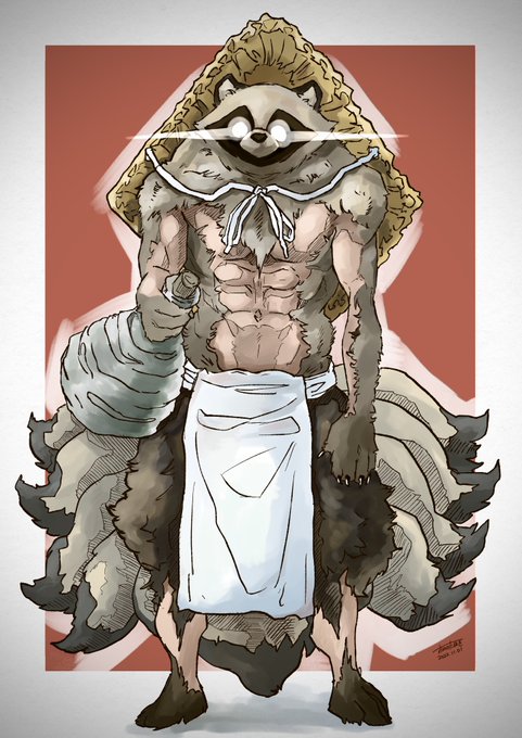 狼男の対抗馬。 たぬき男…にするとあまりにも名前で負けにいってるので、狸の音読みの「り」を使って、リーマンとします。 うん。働けそう。 #イラスト twitter.com/OnonoTanuki/…