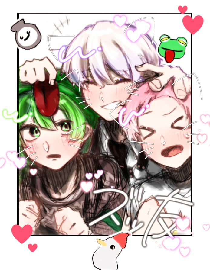 #ニート部アート チェキ風って何だろうなって思いました。 トーマスさんと のじゃさんと かえるさん
