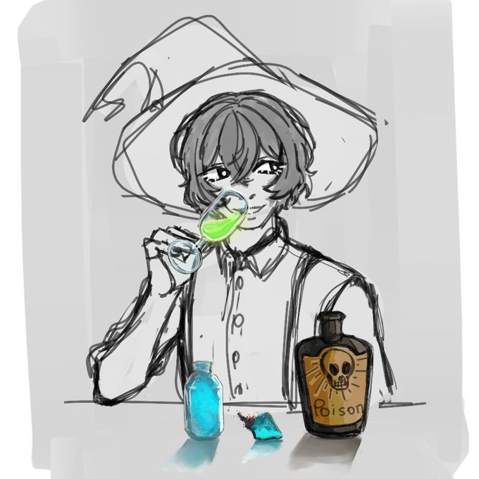 День 17. Зелье Ранпо задумался пока изучал рецепт зелья! (этот колпак еще в детстве дала ему ведьма йосано🥺 с тех пор он с ним не расставался🥺🥺 и ему плевать кто что думает😭💕) #inktober2021 #witchtober #witchtober2021 #bsd #BungouStrayDogs #ranpo