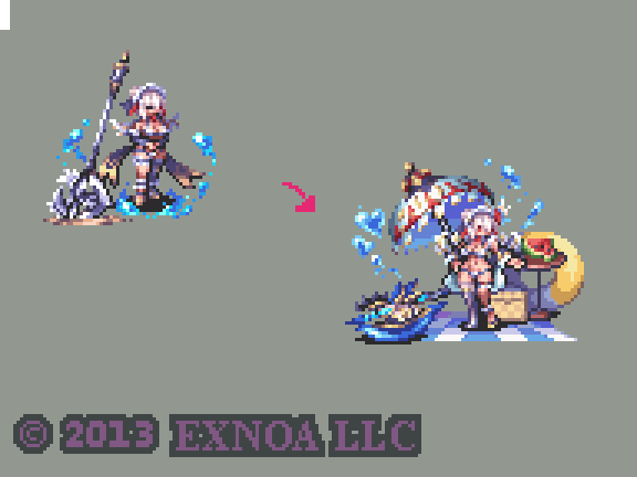 #千年戦争アイギス DMMゲームズ様の『千年戦争アイギス』にて[水着の筆頭侍女セーラ](未CCから覚醒)のドット絵を担当致しました。本日実装でイベントマップでもお試しできますのでよろしくお願い致します🍉 [公式] pc-play.games.dmm.com/play/aigisc/