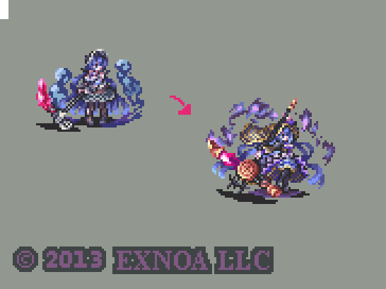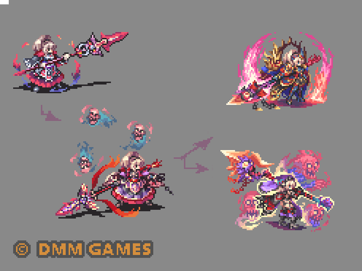 #千年戦争アイギス DMMゲームズ様の『千年戦争アイギス』にて [異界召喚士グリム](第二覚醒のみ)のドットアニメを担当致しました。本日第二覚醒実装ですのでよろしくお願いします。召喚獣含めると大ボリュームでお得感ありますのでぜひ📘🔥 [公式] pc-play.games.dmm.com/play/aigisc/