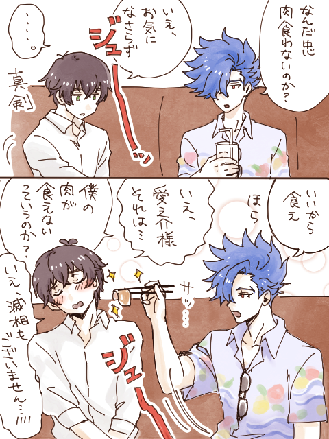 小籠包食べる前に 🐶「熱いので気を付けてくださいね」 って言われてあぁ、って言ったのにマジで熱くて 🌹「アっふぃ!///」ってなっちゃう🌹様と🐶(大丈夫ですか、愛之介様)「写真に撮っていいですか?」て 思考と言葉が逆になってしまう🐶 🌹「ダメだッ!」ハンカチでふきふき