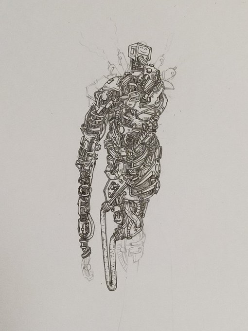 3 31 ロボット制作中 #絵描きさんと繫がりたい #イラスト #ロボット #鉛筆画 22/08/16 20:46