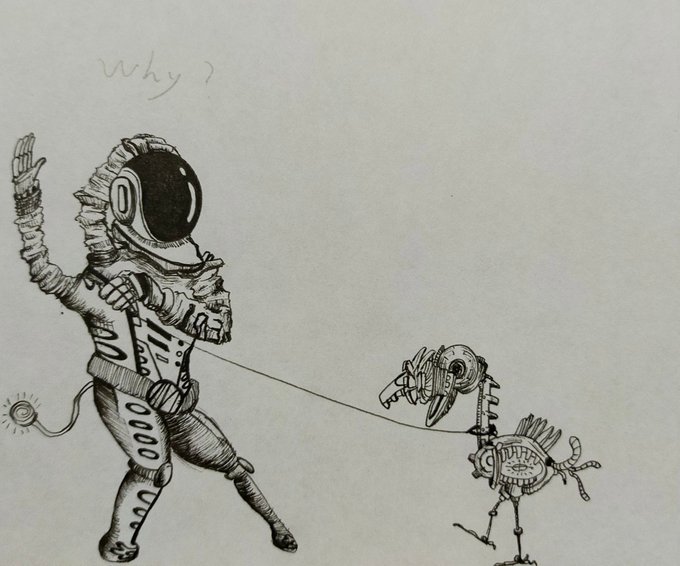 言うことの聞かないペット #絵描きさんと繫がりたい #イラスト #宇宙 #ペン画