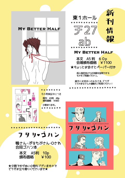 🍒お知らせ🍒 5/4 #プラチナムflower12 鴨さん・ぷるたぶさん・Oさわ 合同ゴハン本 「フタリ🖤ゴハン」 出ます‼️ 全年齢❥︎:❥︎表紙込14p❥︎:❥︎会場頒布価格¥100 〚東1 チ27ab〛 よろしくお願いします🙇🏻♀️