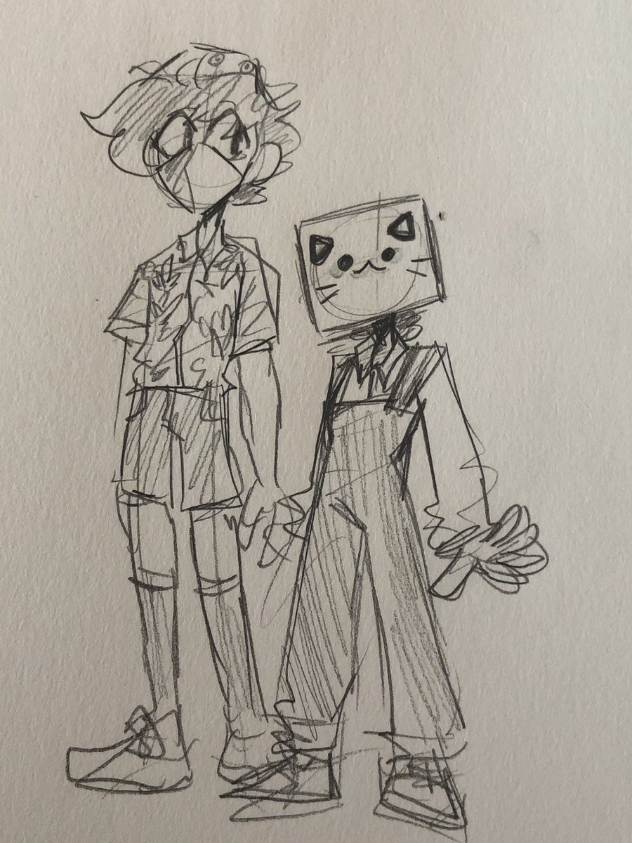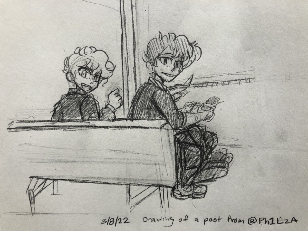 Another drawing I did in class but this time it was kind of different subject I decided to try and draw a tweet of a picture that @/Ph1LzA posted because I got bored and I want to try and draw irl people- #wilbursootfanart#tommyinnitfanart