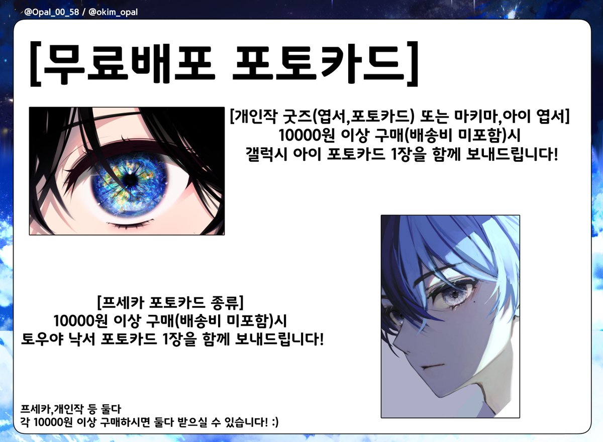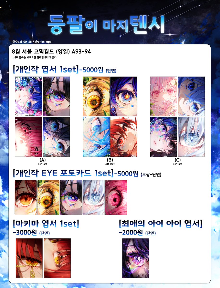 RT🩵 (RT추첨 2분께 원하시는 굿즈 2종류씩 드립니다!) [8월 서코 (양일) A93•94 인포] -58[@Opal_00_58]등유[@Touyu_1210] 합동 부스 입니다. -개인작/프로세카/체인소맨/최애의 아이 (자세한 부스 공지는 꼭 타래 필독 해주세요!) twitter.com/i/web/status/1…