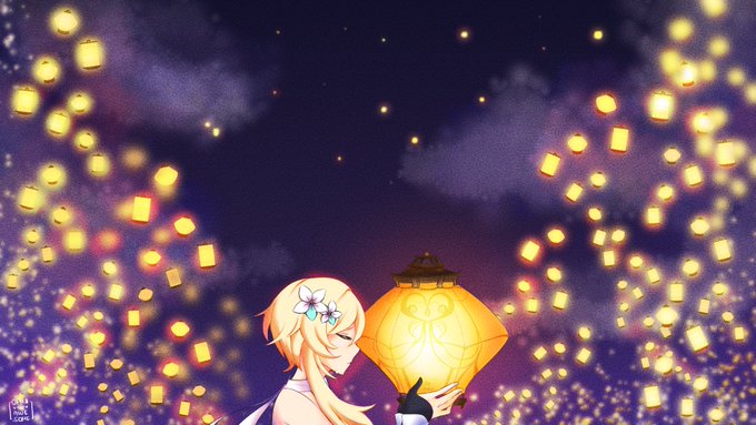 The Traveler's Wish. The traveler has been going around Liyue helping everyone with their Xiao lanterns. But this one. This Xiao lantern is finally the traveler's. #genshinimpactfanart #GenshinImpact