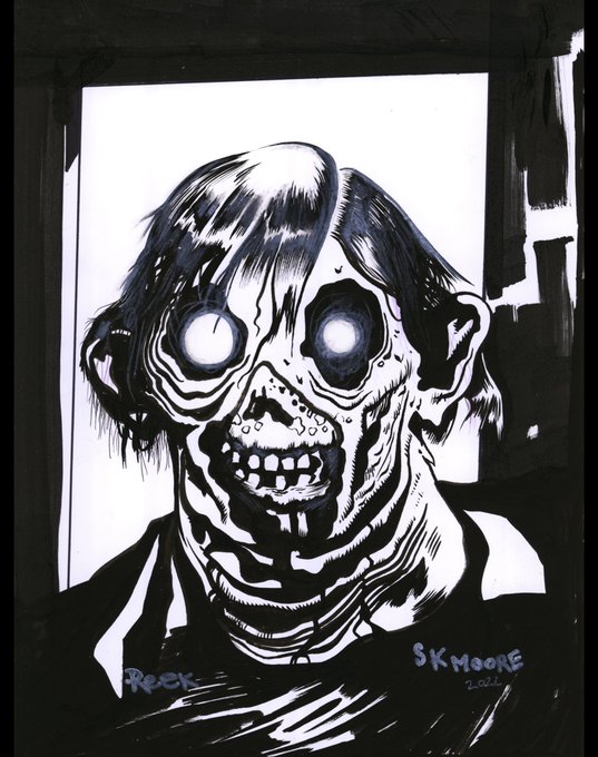 Happy #Halloween …this wee original #horror of mine can be bought at @AbelOriginalArt …He’s a ‘Reek’ {#zombie } from the #Defoe series in @2000AD abeloriginalart.com #Halloween2022 READ about the series on @HorrorNews here horrornewsnetwork.net/2000-ads-defoe… #inktober2022 #ink