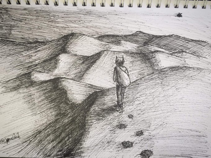 #Inktober Day 13 {Dune} 🖤✨ Hope you like it ✨ . . . . #inktoberchallenge #inktober2020 #inktober2020day13 #inktober2020dune #inktoberdune #dune #art #artist #drawing #sketch #blackandwhite #sand #desert #bag #scenery #background #oc #anime #manga #comics #obaidah #oppaidah