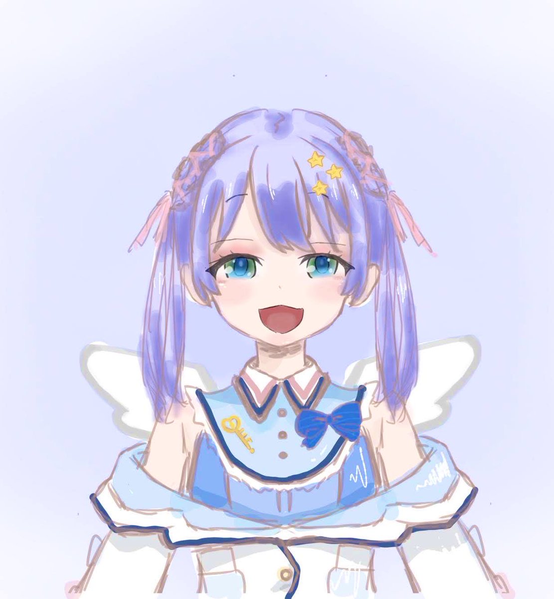 初めて描いたちーちゃん🎀💙 この衣装も笑顔もすごい好き! これは模写だけど次からはたくさん動かせるようになりたい✊🏻 #ちーあーと