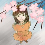 #桜のイラスト #桜を見上げる女 #桜を見上げる女の子 #女の子のイラスト #オレンジ色のワンピース #2時間半くらいで完成 #ほんとはもっと #ほんとはもっと描き込みたい #イラスト #イラストレーション #イラスト好き #絵 #お絵描き #お絵描き大好き #お絵描き楽しい #絵描きさんと繋がりたい